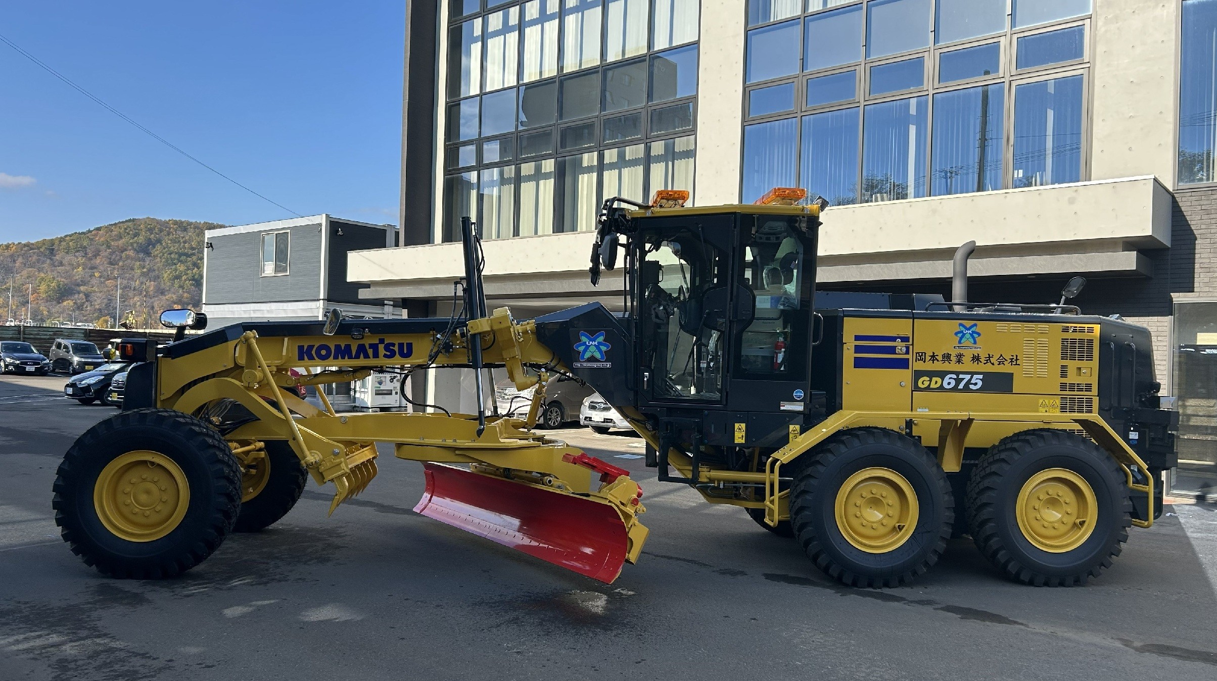 (コマツ製 GD675、ブレード長4.0m、特定特殊自動車排出ガス2014基準適応車、札幌市1人乗り仕様車)