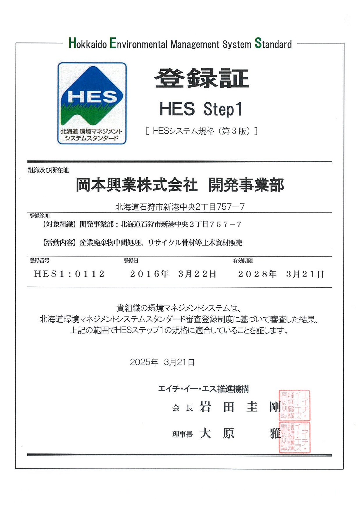 認定・登録証